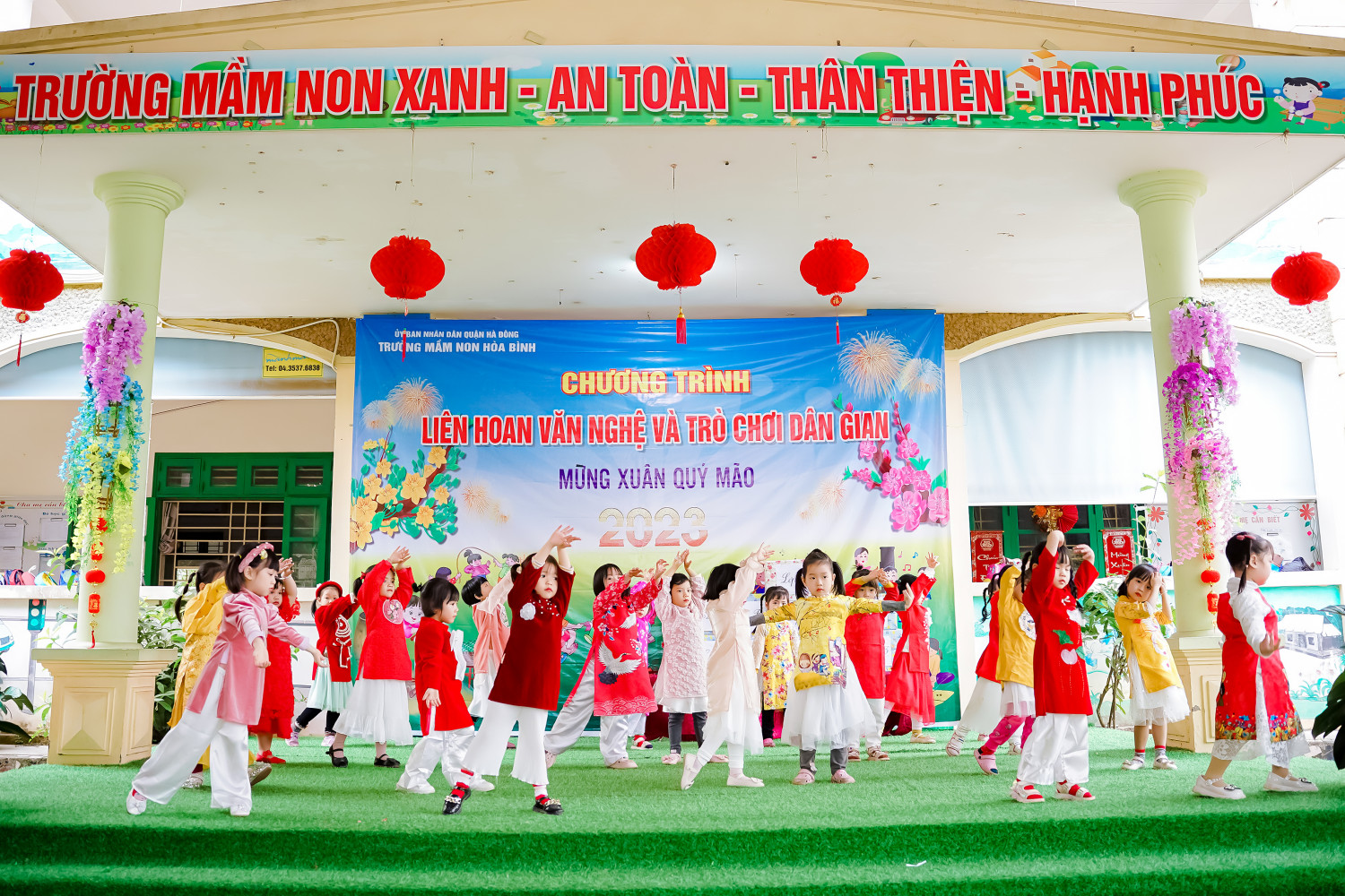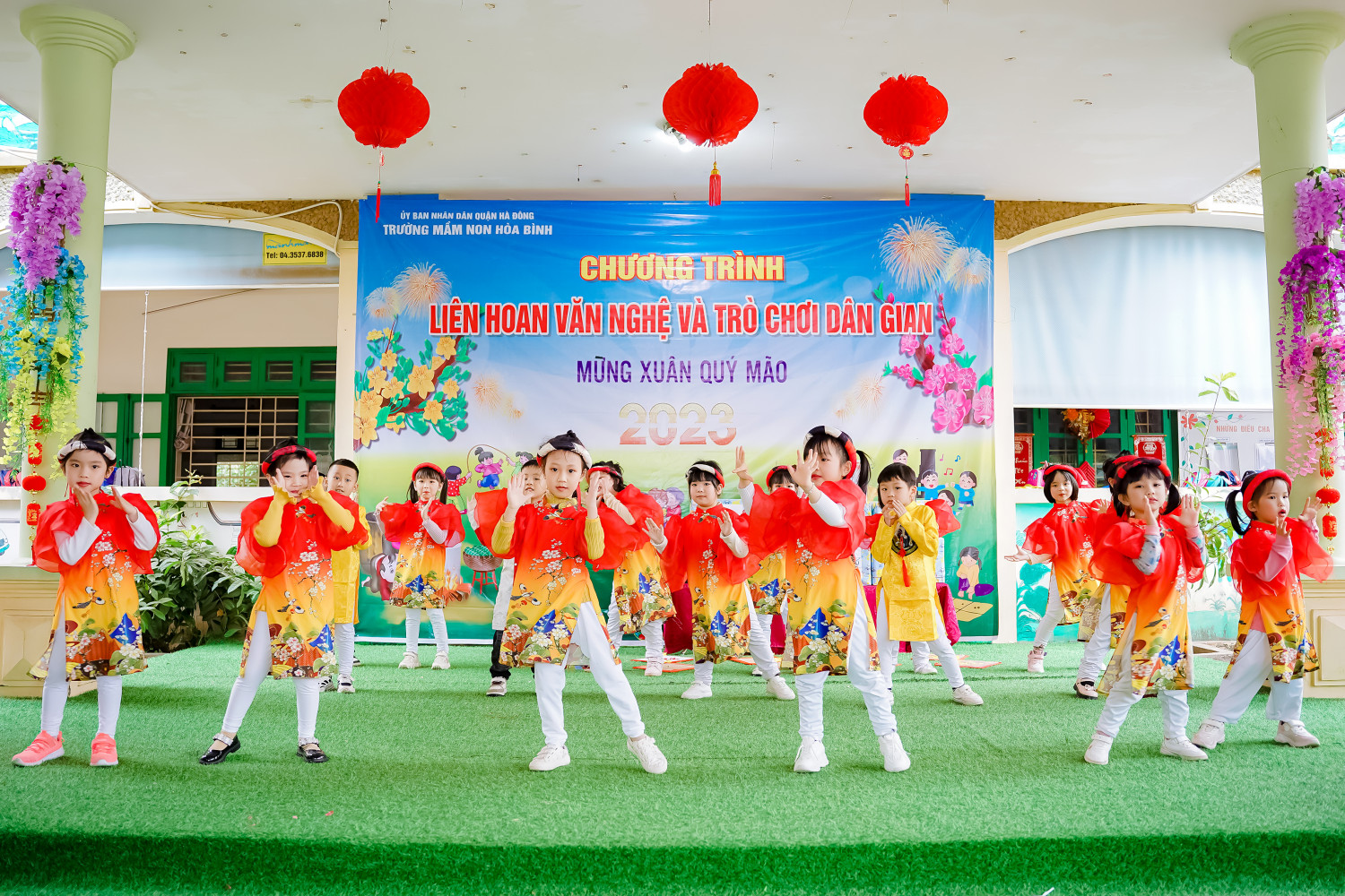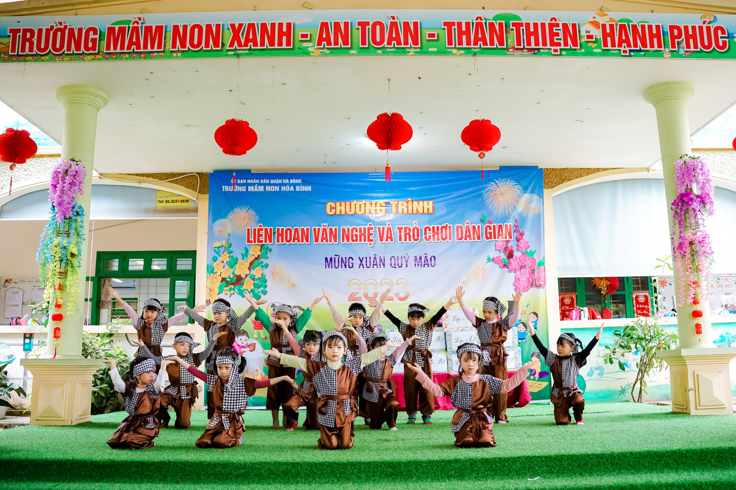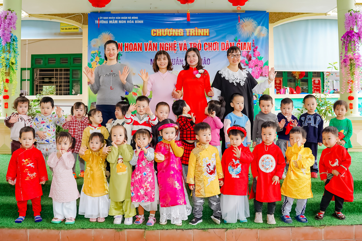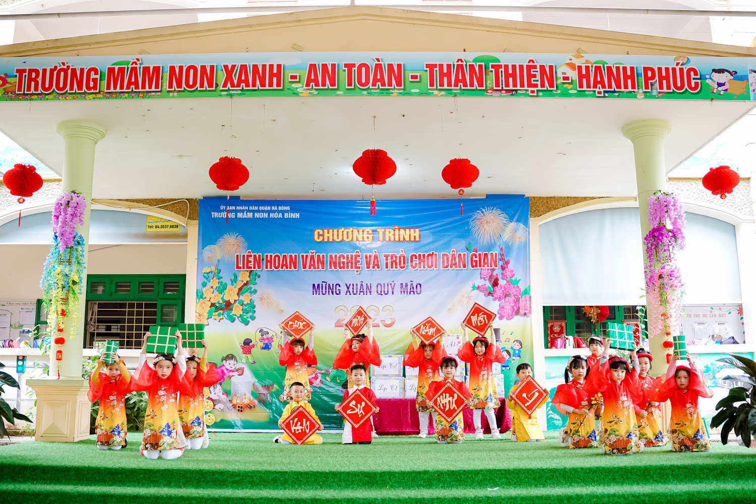 Hôm nay, cùng hòa chung với không khí cả nước hướng tới ngày thành lập Đảng cộng sản Việt Nam và chuẩn bị đón Xuân Quý mão Trường Mầm non Hòa Bình long trọng tổ chức chương trình “Chương trình liên hoan tiếng hát dân ca và trò chơi dân gian