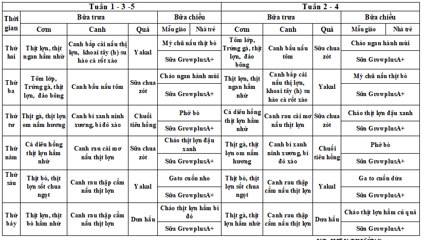 Thực đơn của trẻ năm học 2023-2024